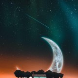 Fondo - Arte Digital - Paisaje - Atardecer - Fantasía - Noche - Luna - Estrellas